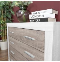 Meyvaser -Sinfonier 5 Cajones, Cómoda, Acabado en Roble y Blanco, Medidas: 60...